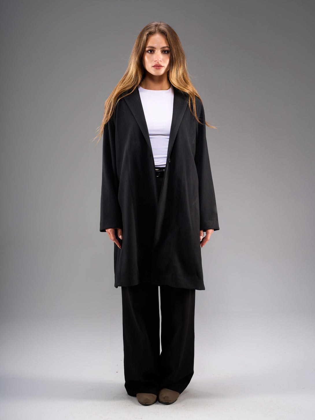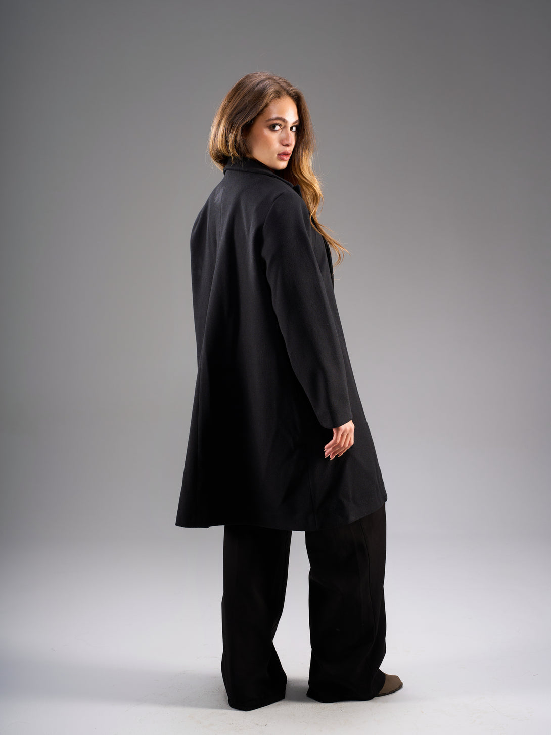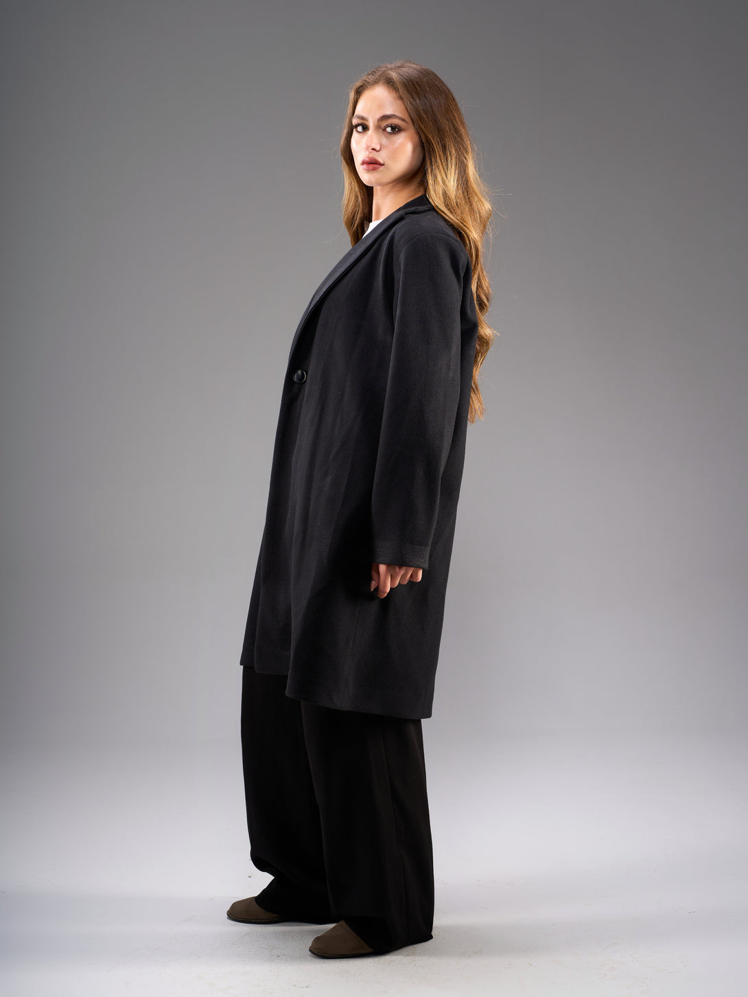 Crafted from premium felt fabric, this elegant coat offers exceptional warmth and structure while maintaining a sophisticated silhouette.