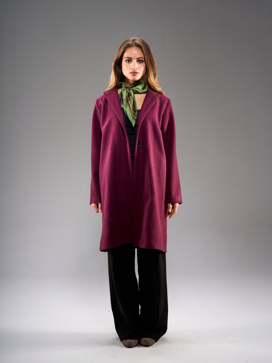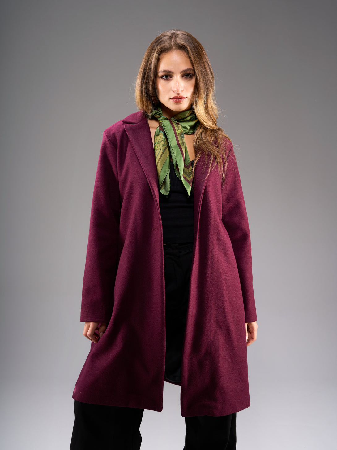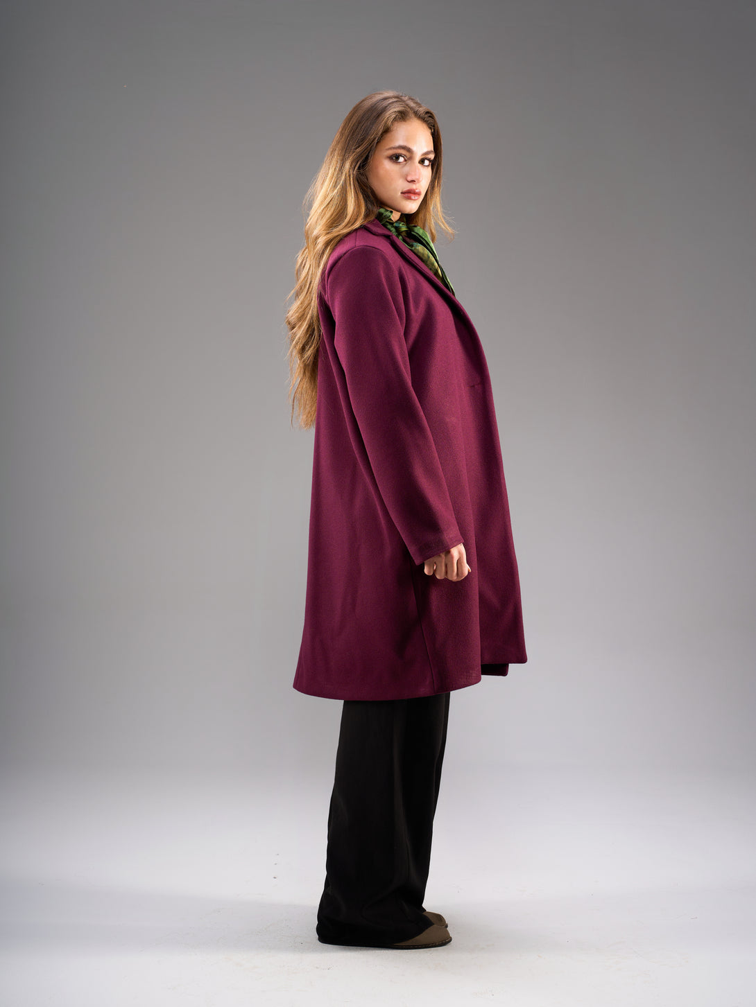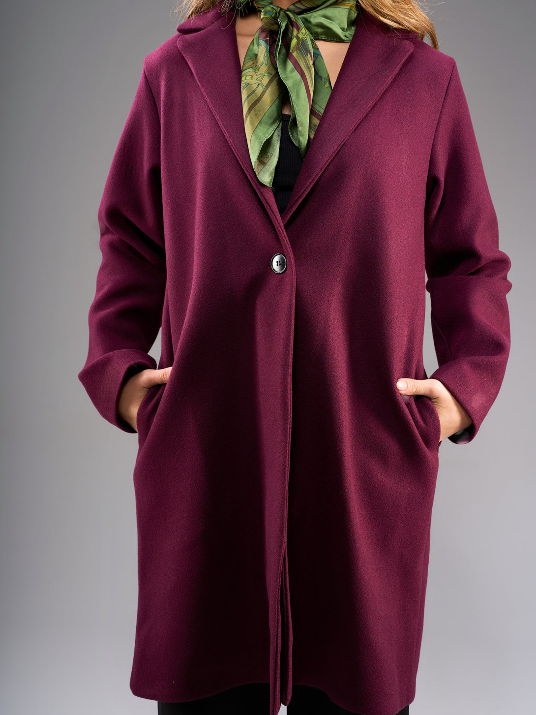 Crafted from premium felt fabric, this elegant coat offers exceptional warmth and structure while maintaining a sophisticated silhouette.