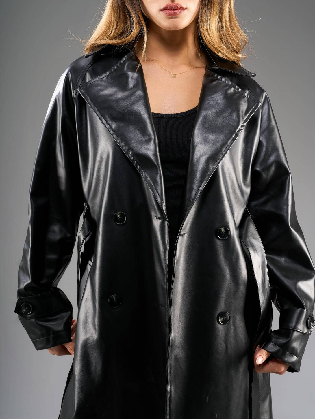 Leather trench coat-Black